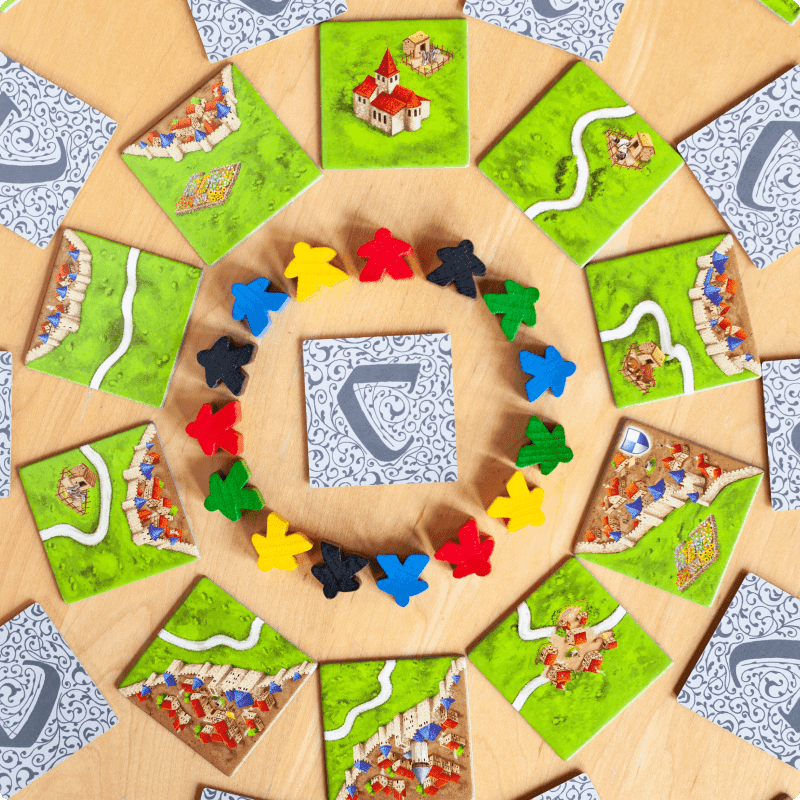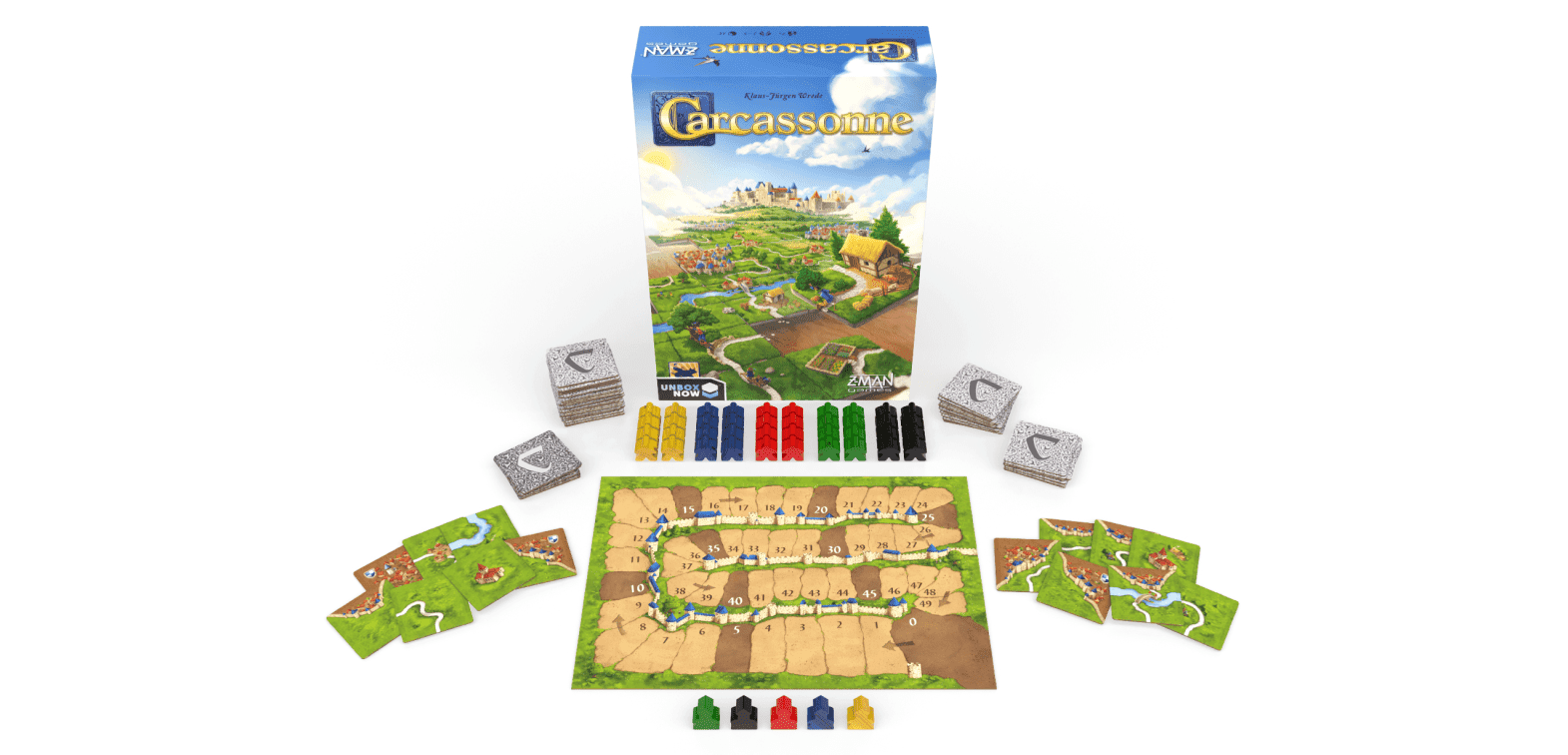 With its simple yet rich game mechanics and eighty-four tiles that can be configured into numerous combinations, Carcassonne appeals to beginners and veteran gamers alike.